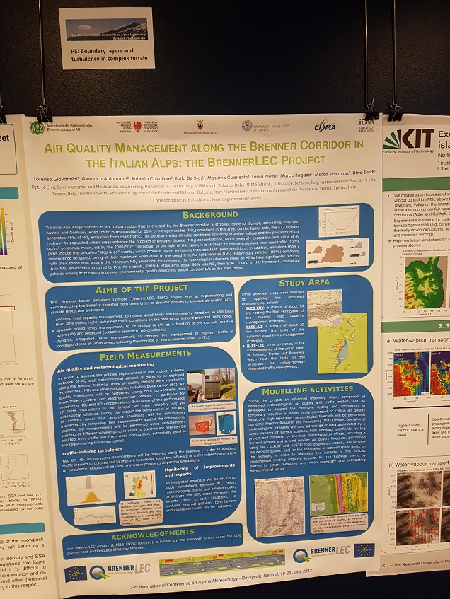The Department of Civil, Environmental and Mechanical Engineering of the University of Trento, partner of the BrennerLEC project, has presented the project through a scientific poster. The poster has included some technical details about the diagnostic and forecasting models that will be implemented and about the field monitoring activities for the assessment of the expected benefits.