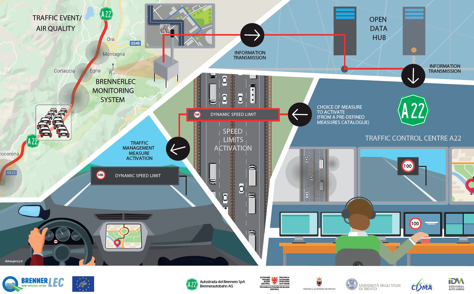 From an environmental point of view the first empirical measurements have highlighted that an average reduction of 15 [km/h] of the average speed of light vehicles, compared with the normal flow of traffic with speed limit at 130 [km/h], determines a reduction of 10% of the average concentration of NO2 (nitrogen dioxide) at the roadside of the highway.